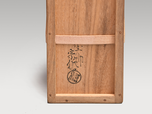 八代 宗哲作の利休棗です。底に「哲」の針銘が施されており共箱が付属しております。 蓋裏には即中斎宗匠の朱の在判が施され箱書きが備わっております。 キズ欠点なく良い状態です。 利休棗(りきゅうなつめ)とは、千利休が好んだとされる棗(なつめ)のことで棗の基本形とされています。