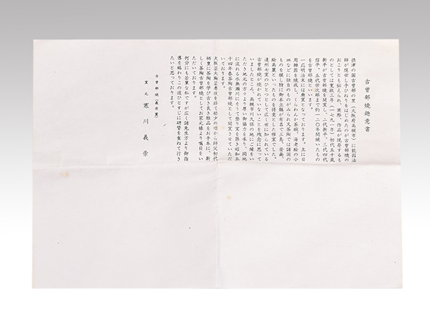 作者 | 寒川義崇 初代・寒川栖豊の末子として生まれる 昭和54年に、古窯を再興し、古曽部の特徴である、三島手絵高麗写など様々なものを制作し、独自の作風を確立し、多くの茶道具を制作しています。 |