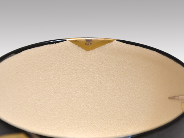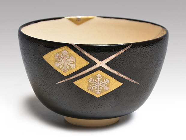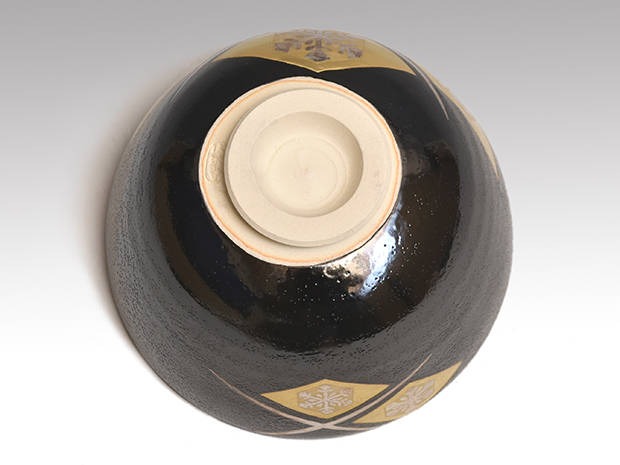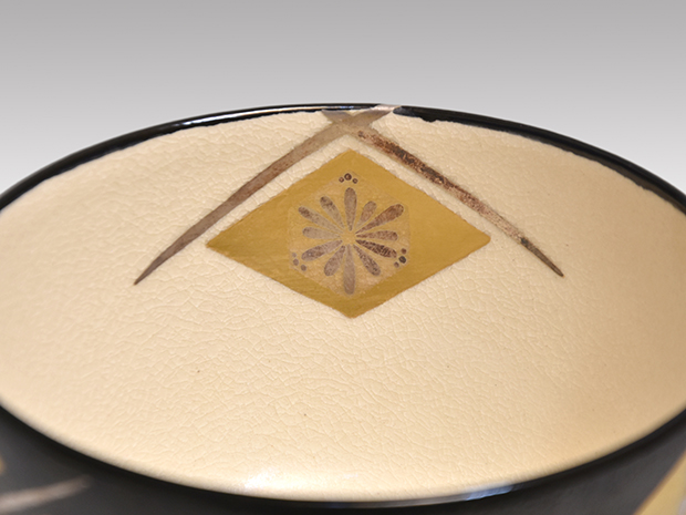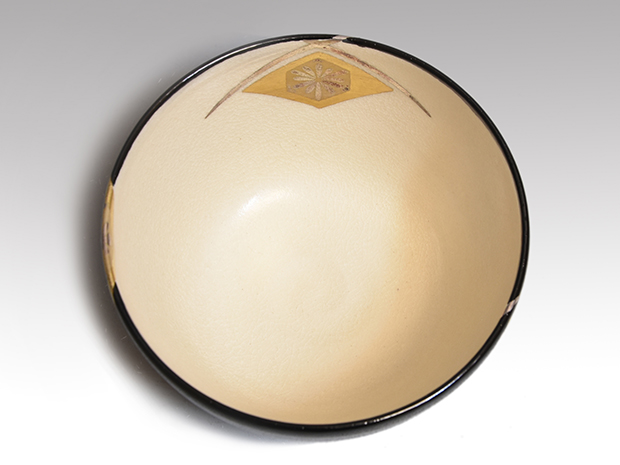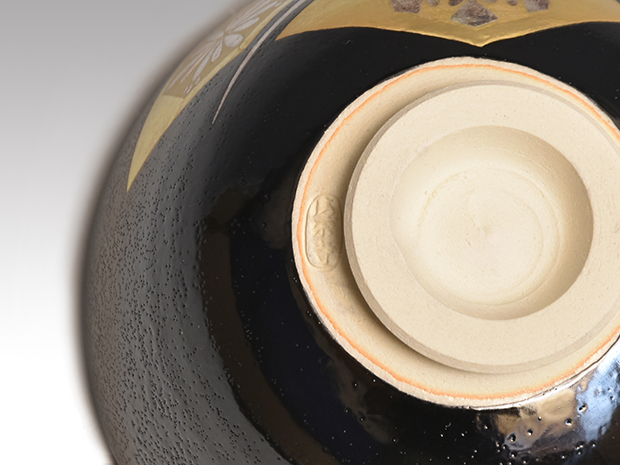 幾分小振りな仁清手の茶碗で大胆なデザインです。 外側は黒地に金銀で6種類の雪の華を配し内側にも1箇所配しております。 高台脇に「清閑寺」と印が捺されております。 殆ど使用してなくキズ欠点なく良い状態です。