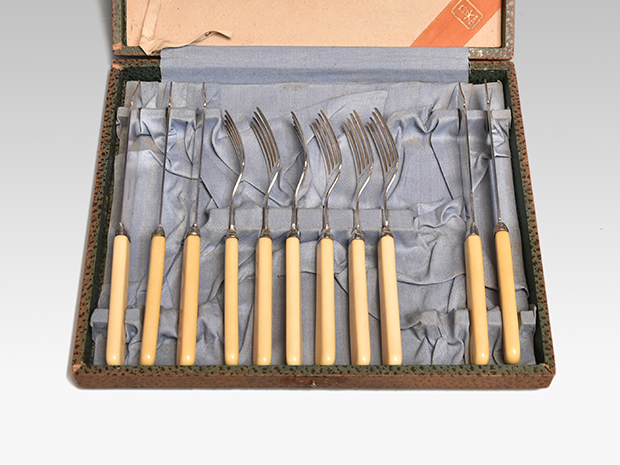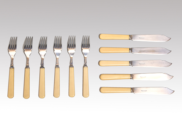 英国 YEOMAN シルバープレート 象牙 カトラリー 11本セット(フォーク6本 ナイフ5本)