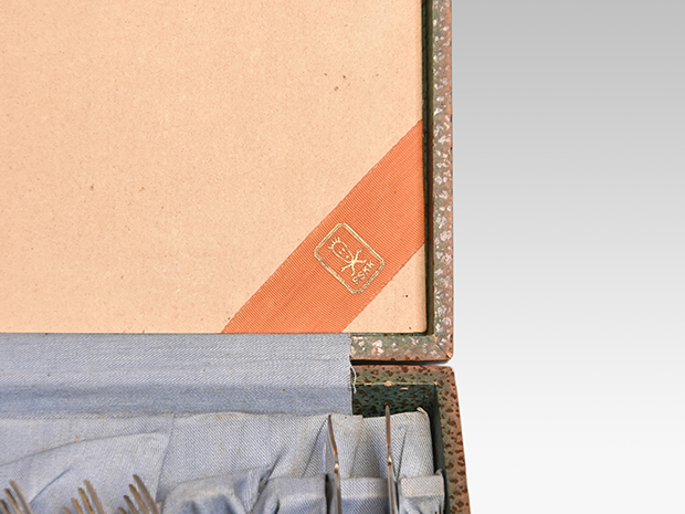 商品説明 | イギリスの老舗シルバースミス、YEOMAN社によるカトラリーセット。 ハンドル部分には象牙(アイボリー)が使用されており、繊細で上品な質感が魅力です。 フォークとナイフにはシルバープレート(銀メッキ)が施され、気品ある輝きを放っています。 「YEOMAN PLATE-EPNS MADE IN ENGLAND」の刻印。 20世紀中頃の英国らしいクラシカルな意匠と、天然素材の手触りが相まって、使うたびに豊かな時間を演出してくれます。ディナーや特別な席にふさわしい一品です。 木製箱が付属いたしますがオリジナルではございません(※イタミあり) 全体的にスレが見られますが、ご使用には差し支えのない程度です。 |