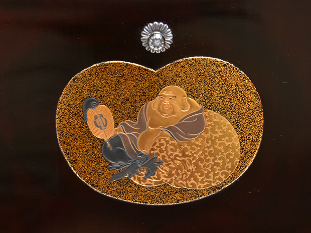 松花堂好又は遠州好 袋棚 四方に布袋と山水蒔絵入り