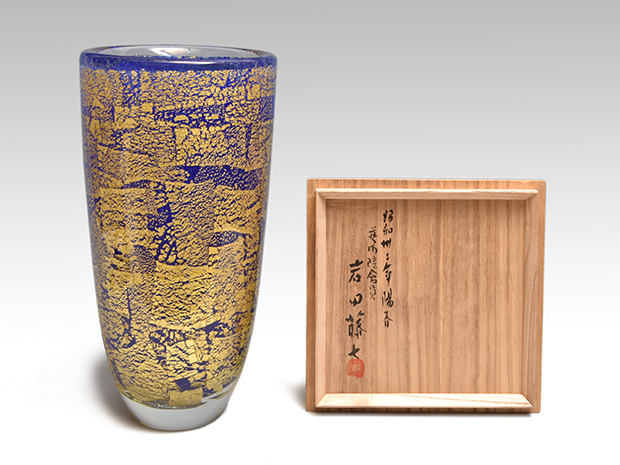 玻璃金紗瓶 岩田藤七(作) 共箱 1957年大型作品 高さ:32.5cm 二重箱入
