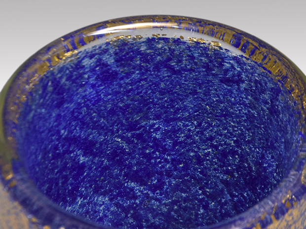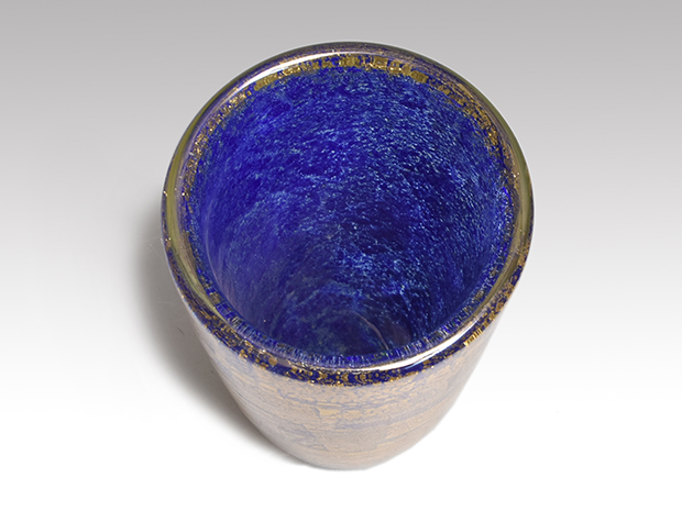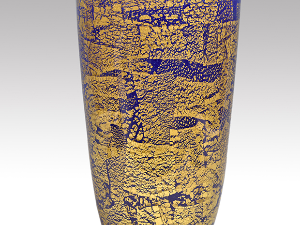 昭和32年陽春に製作された内側に瑠璃色外側に金箔を二重に散りばめたクリスタル製の大花瓶です。 存在感がございます。 キズ欠点なく良い状態です。
