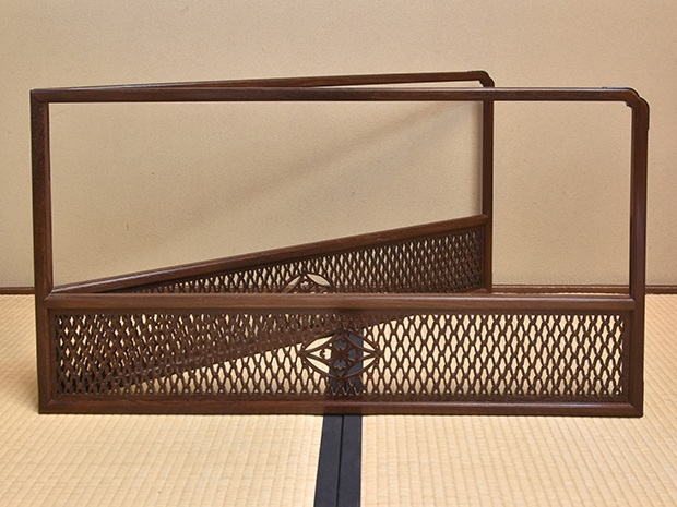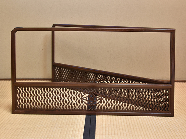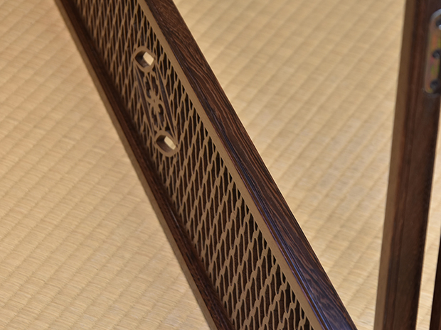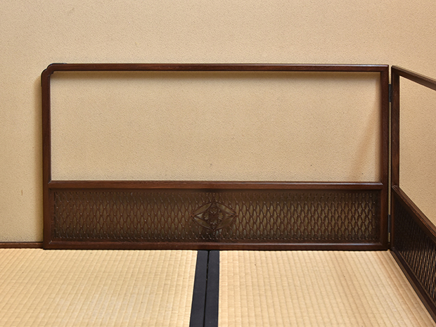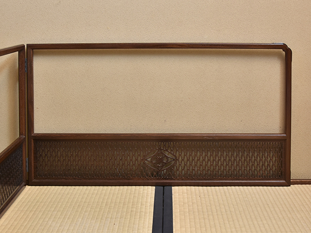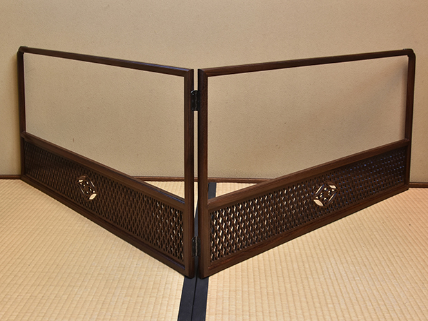 遠州好 鉄刀木 網目に七宝透かし風炉先屏風 京間用