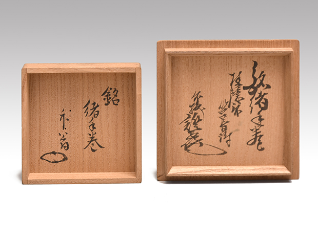 付属品 | 巣入り牙蓋 仕覆 薮内家七代竹翁箱書箱 八代竹猗箱書箱 |