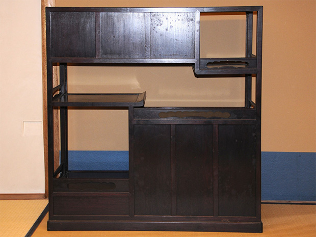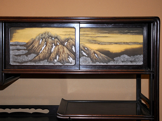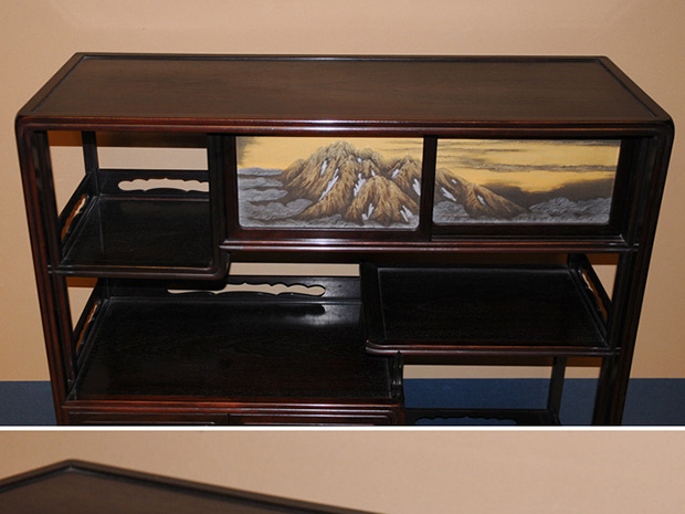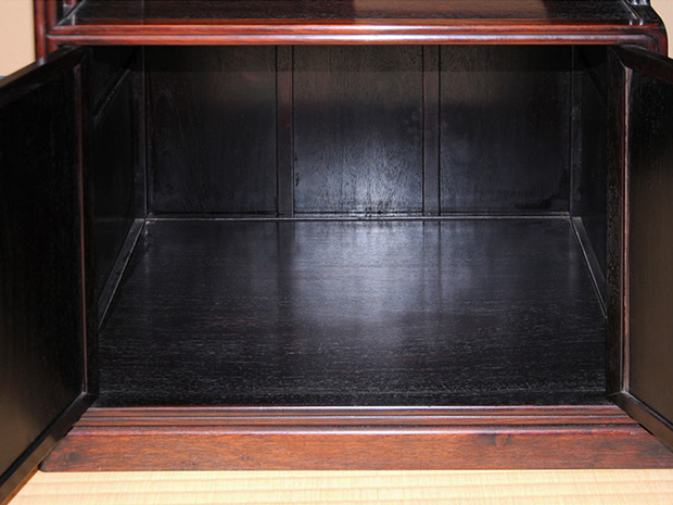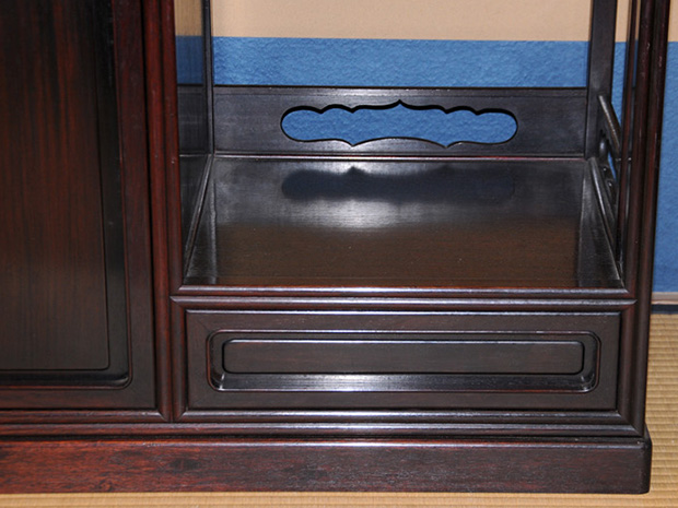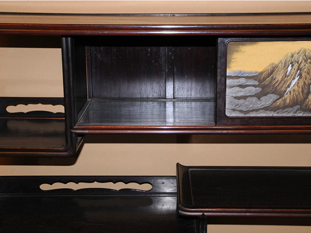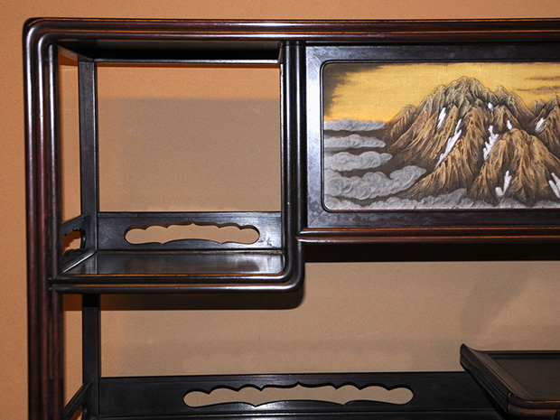 唐木紫檀 高蒔絵入り 違棚 透かし彫り高さ106.5㎝ 幅100㎝