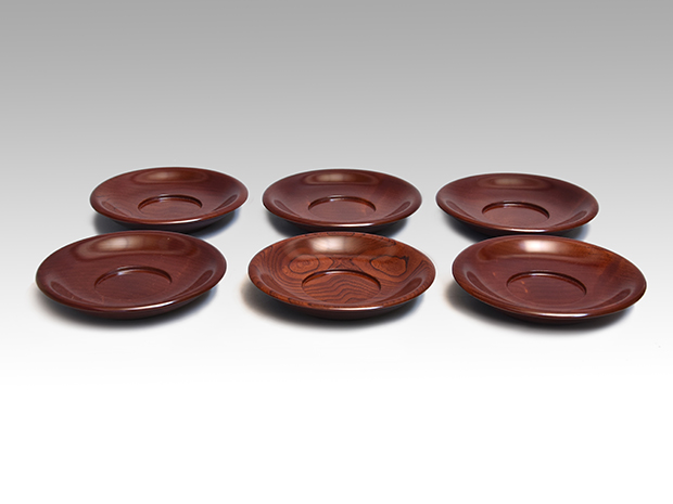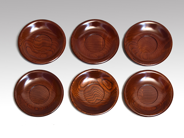 黒田辰秋(作) 拭漆欅茶托 共箱 昭和49年作 未使用