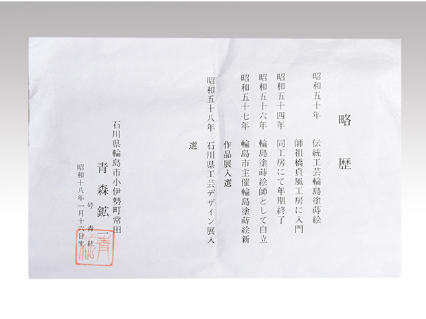 昭和57年 輪島市主催輪島塗蒔絵新作品展入選