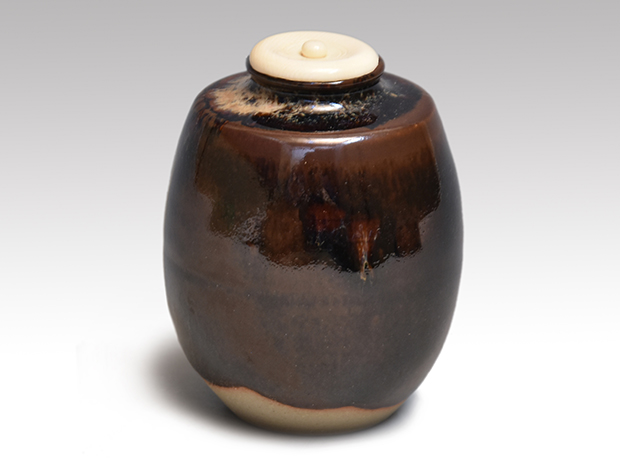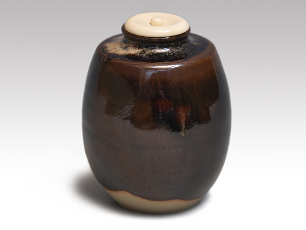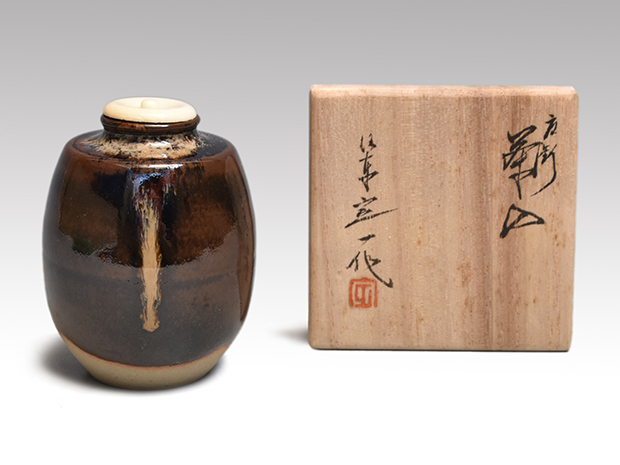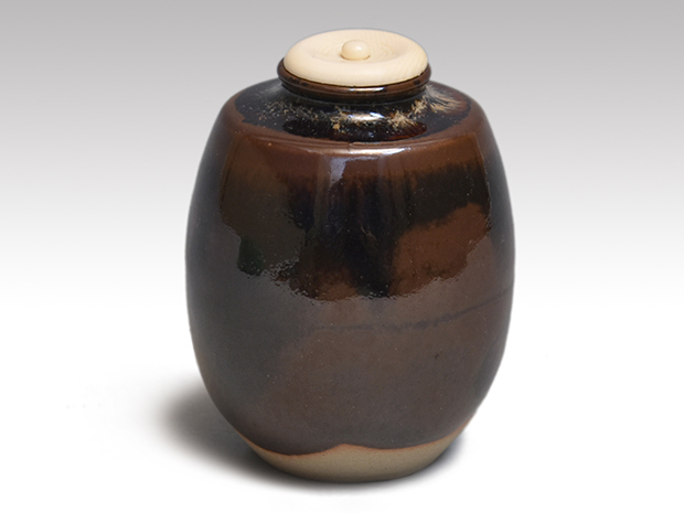 肩衝茶入 桶谷定一(作) 牙蓋 仕覆 共箱 未使用