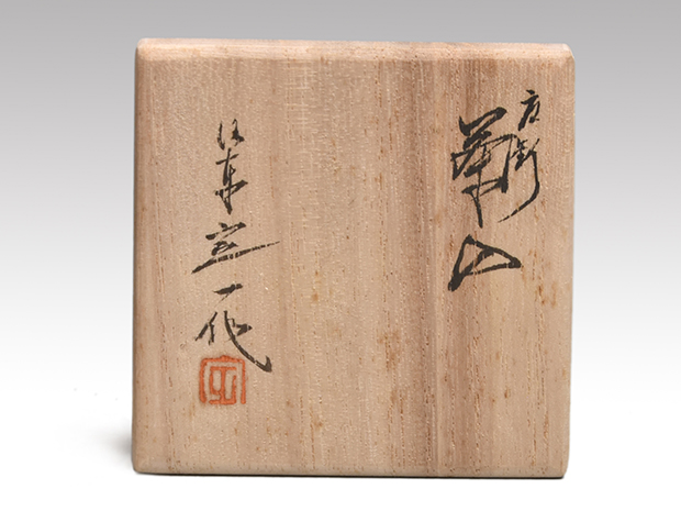 商品説明 | 肩衝の茶入です。 正面に釉掛かりが見事です。 仕覆は正倉院裂の一種でしょうか。 糸切に「定」の字が彫られております。 未使用でキズ欠点なく良い状態です。 |