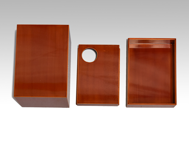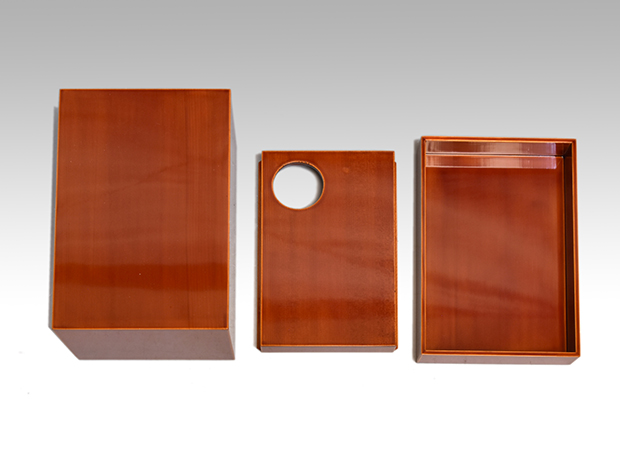 | 寸法 | 茶箱:縦14.5cm 横21.5cm 高さ:14cm 茶碗:口径:11.3cm 高さ:7.5cm 棗:口径:6.2cm 胴径:6.5cm 高さ:5cm 香合:径:4.3cm 高さ:2cm 茶杓:全長:16.5cm 重量:4.1g 振出:口径:2.5cm 胴径:6.5cm 高さ:8.5cm(栓まで) 茶巾筒:径:3.7cm 高さ:6.3cm 茶筅筒:口径:4.5cm 底の径:3.2cm 高さ:11.3cm 茶筅:全長:10.5cm |