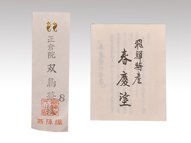 飛騨春慶塗 茶箱一揃い 象牙茶杓 仕覆(正倉院 双鳥華紋)未使用