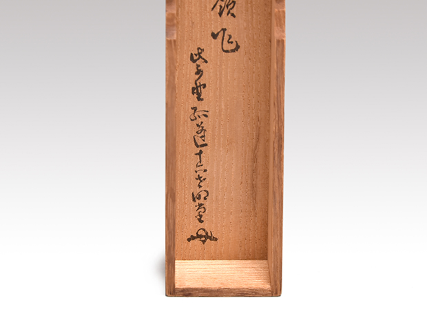 銘「大原野」で京都の京都市西京区です。 茶杓は逆樋の遠州形で曲げは折だめ、貝先は丸く切留は4刀です。 景色も入り見事な茶杓です。 箱は遠州箱で箱表は「茶杓」 裏は「銘 小原野 大嶺作 紫野孤篷十二世明堂花押」
