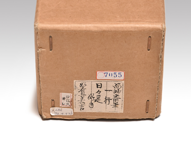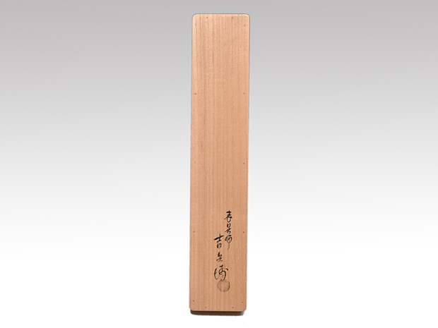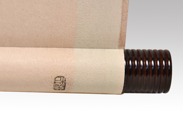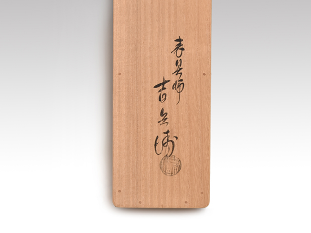 軸棒に「奥吉」の印、箱裏に「表具師 吉兵衛 印」とあります。