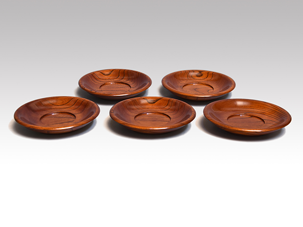 黒田辰秋(作) 拭漆欅茶托 共箱 昭和49年作 未使用