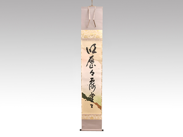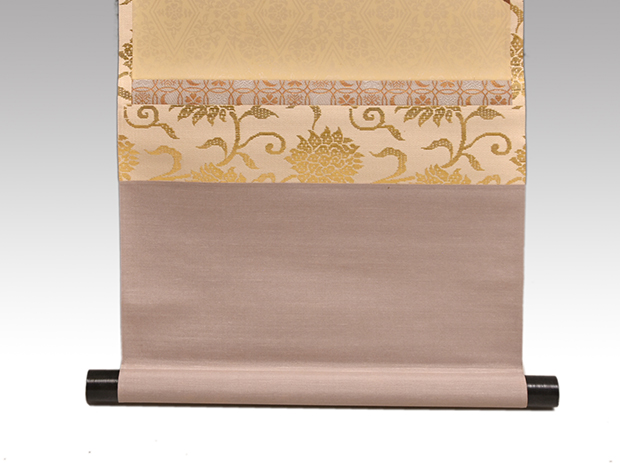 太巻きの良い表具で一文字、中回し共金襴の上等の表具で殆ど使用してなくシミ、折れ無く良い状態です。