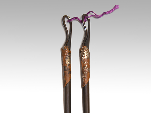 朧銀は銀と銅の合金で銅に銀を四分の一加えた合金です。 渋い味わいです。 銅のつるの葉が付き金が施されております。 未使用でキズ欠点なく良い状態です。