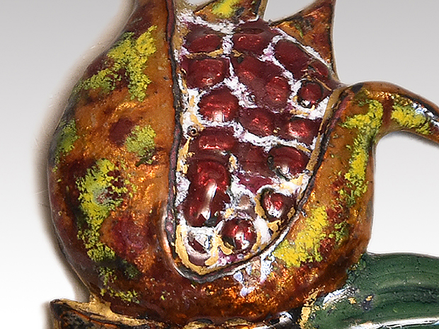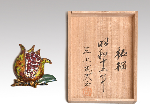 鎚起七宝帯留 ざくろ 昭和12年 三上武夫(作) 共箱