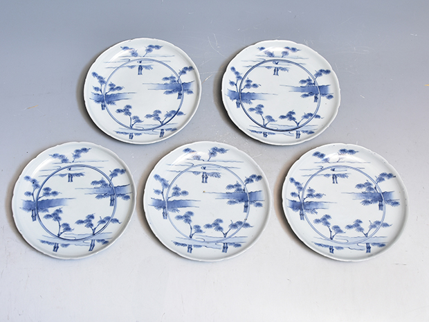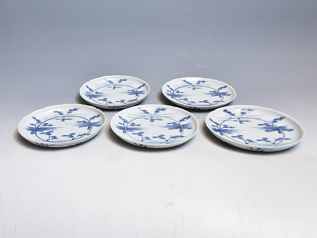 古伊万里染付竹文中皿5枚 江戸時代後期
