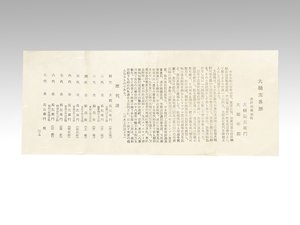 金沢生。昭和9年に大樋焼本家窯元九代目を襲名。