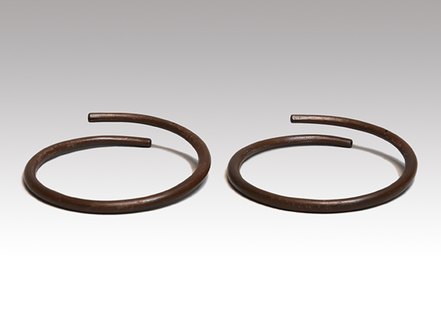 加藤卓男(作) 青釉山羊文陶板入りループタイ 共箱 人間国宝