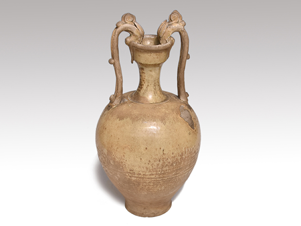 中国 唐時代 白釉龍双耳壷 高さ:43cm