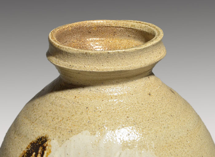 浜田庄司(作) 塩釉絵刷毛目扁壷 共箱