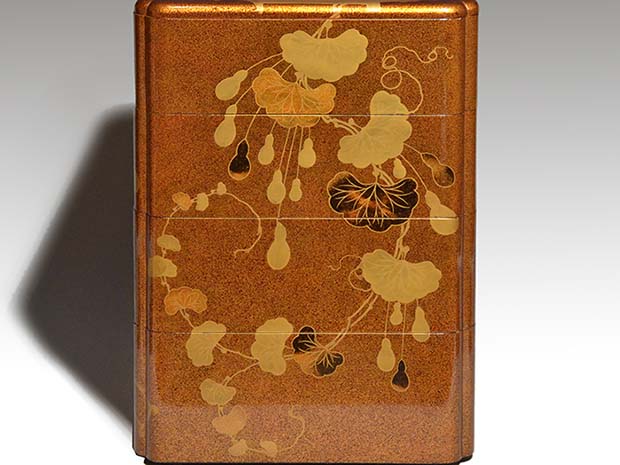 梨地に御所車に夕顔蒔絵 四段重箱 江戸時代