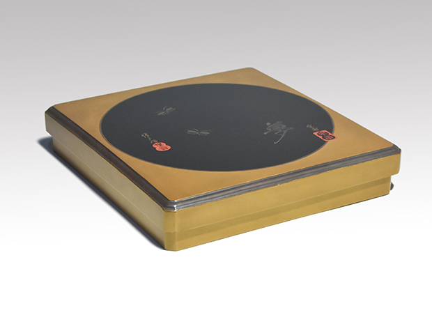 | 寸法 | 硯箱:縦23cm 横21.3cm 高さ:4.3cm 硯:縦12cm 横6.3cm 高さ:1.5cm 水滴:縦2.8cm 横:4.3cm 高さ:1.8cm |