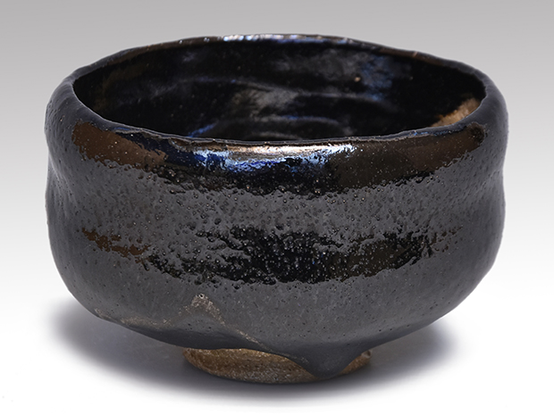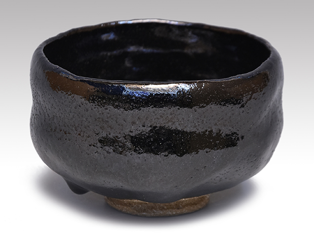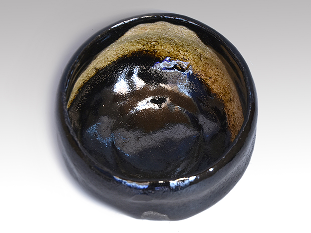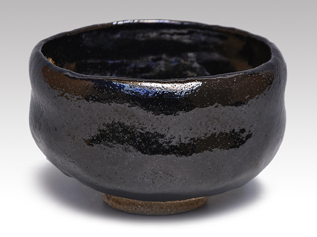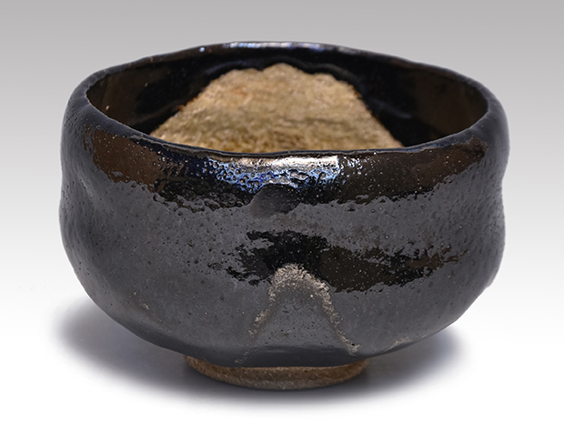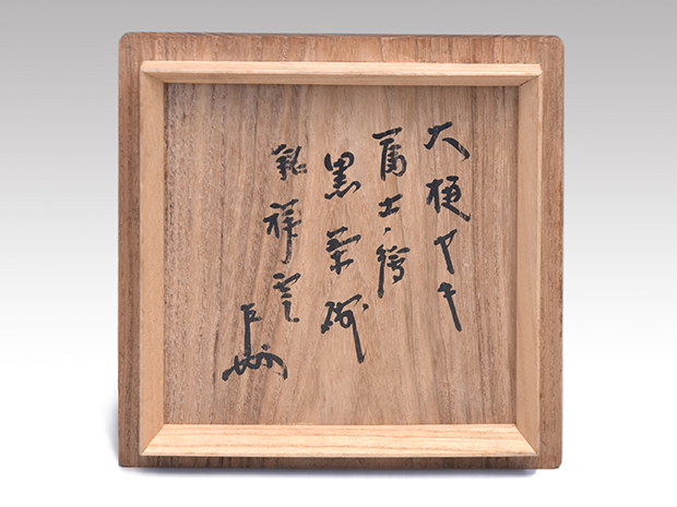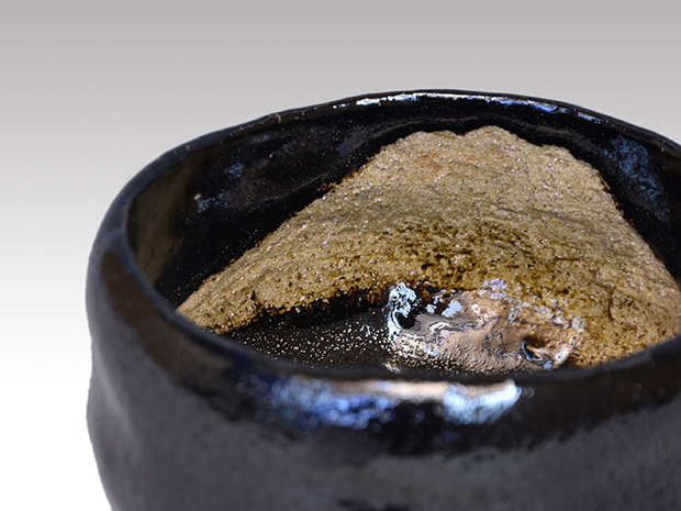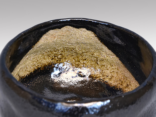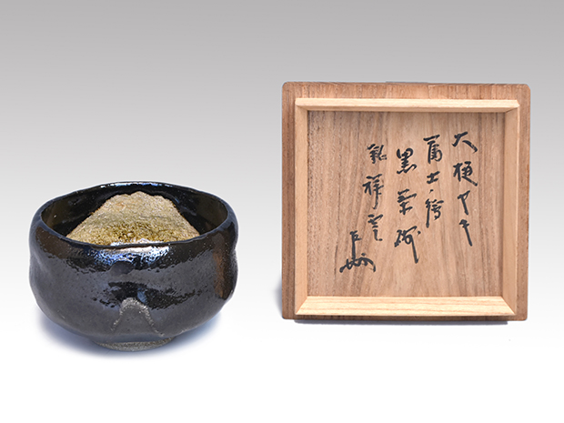 九代 大樋長左衛門(作) 富士絵 黒茶碗 共箱 銘「祥雲」 表千家 即中斎宗匠箱書
