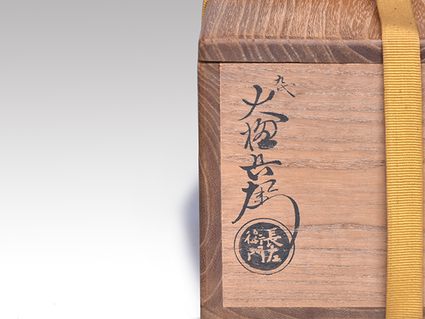 茶碗の高台脇の印と箱の印は上手の「長左衛門」です。