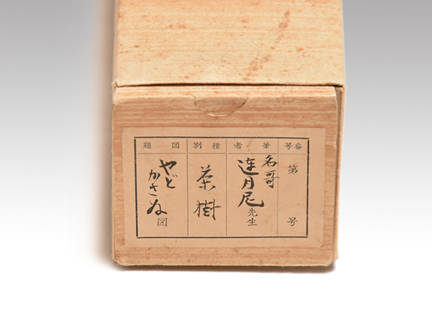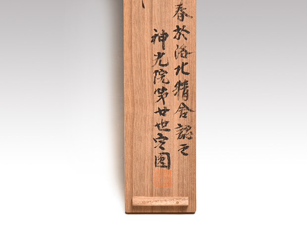 箱書は表「蓮月尼遺墨一」裏「題 花のころ たびにありて 昭和41年仲春於洛北北精舎認之 神光院第二十世定圓」