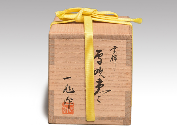 素晴らしい出来で手の込んだ蒔絵が施されております。 形は雪吹で金地に雲錦(桜・紅葉)が梨地、金地、金板で螺鈿も施され葉脈まで丁寧に蒔絵されており流水の中に配されております。 合口の部分は金地を薄くして全体を引き締めております。 内側と底は豪華な梨地が施されております。 高台内に針銘で「一兆」 雲錦蒔絵ですので春から秋までご使用出来ます。 一兆作品では最高峰の出来です。 未使用でキズ欠点なく良い状態です。