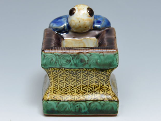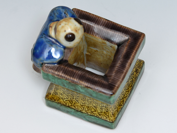 須田青華(造)九谷焼 吉田屋写 一閑人蓋置 共箱