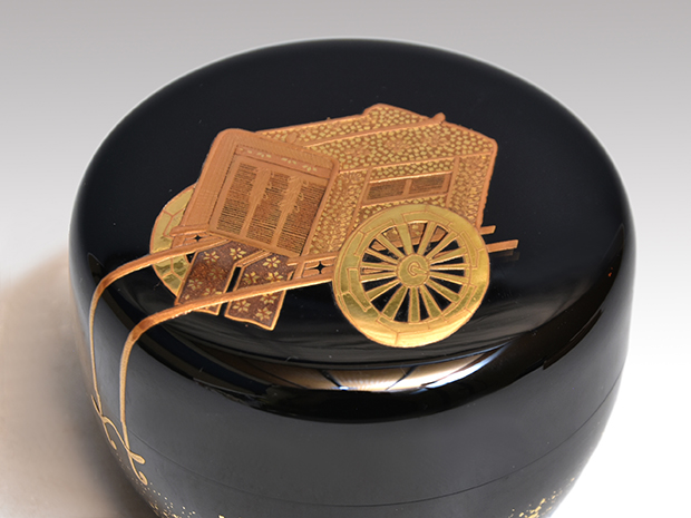 御所車蒔絵平棗 清瀬一光(作)共箱 即中斎朱在判、箱書付