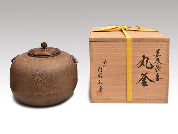 丸釜 久田尋牛斎「嘉辰歓喜」文字入 炉用 門脇喜平(作) 共箱