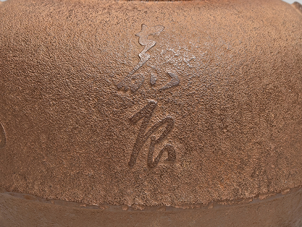 歓喜嘉辰は最高の喜びの様子です。 炉用の丸釜で肌は打ち膚で鐶付は扇、久田尋牛斎宗匠の「嘉辰歓喜」の文字が前後に二字づつ入っており花押も鋳出されております。 初釜や慶事に良いですね。 数回使用したおりますが良い状態ですぐにご使用できます。