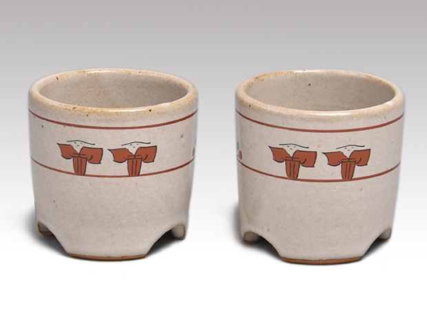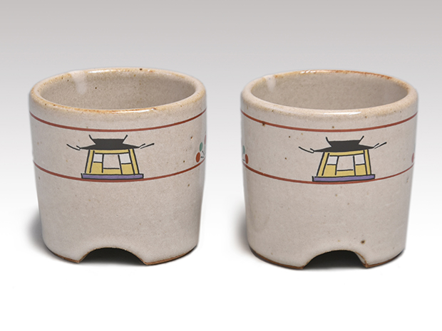 聞香炉一双(2個) 赤膚焼 奈良絵