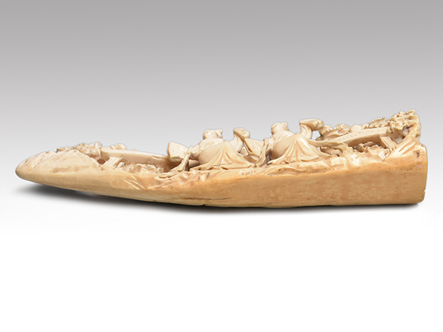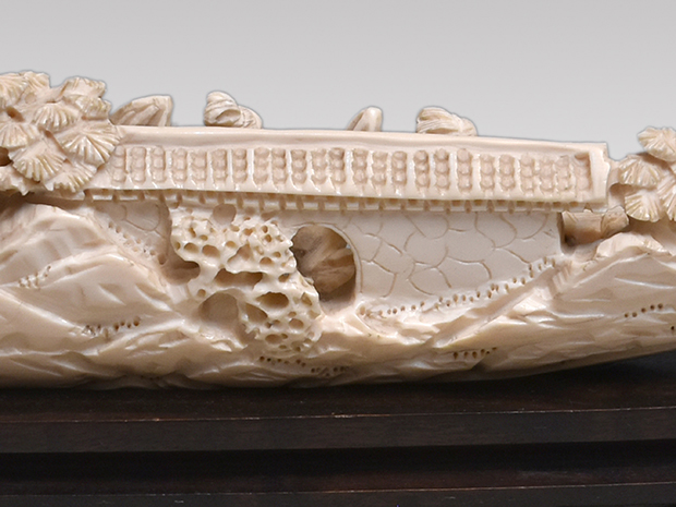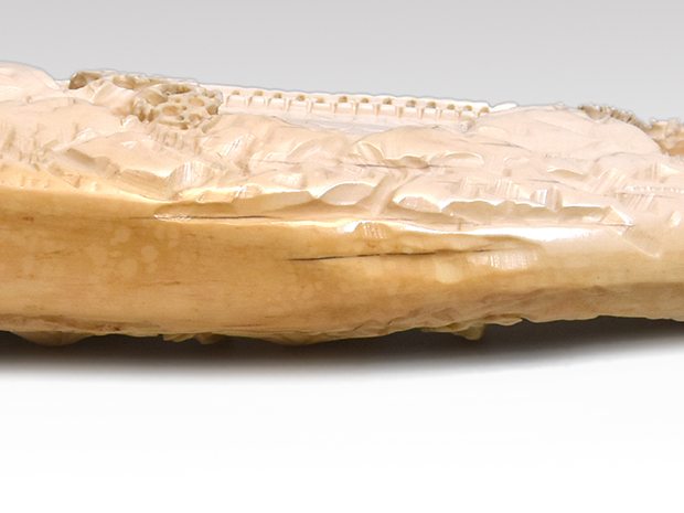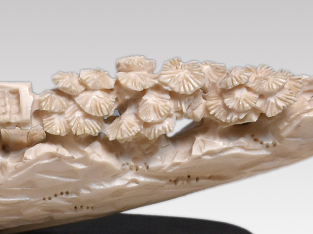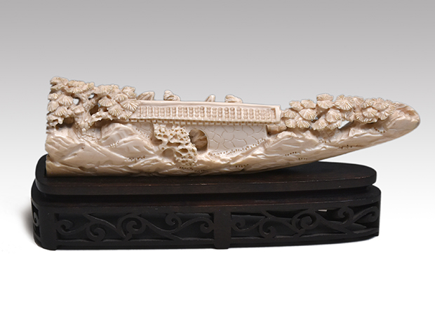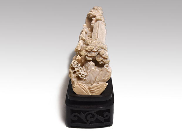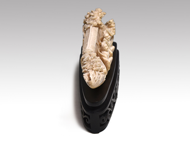 | 寸法 | 象牙:長さ:22.5cm 奥行:5cm 高さ:6.2cm 重量:365g 台座を含む高さ:10.3cm |