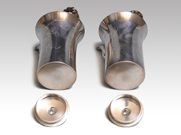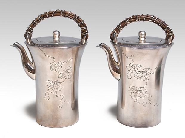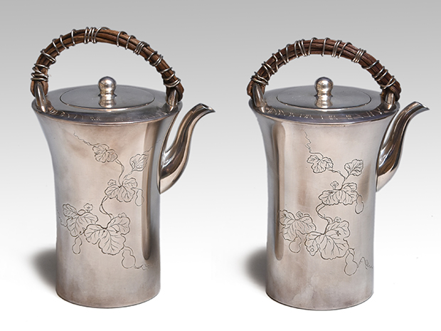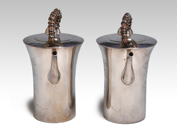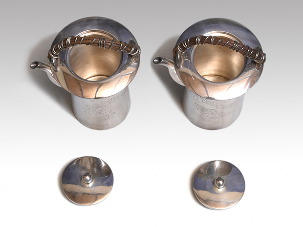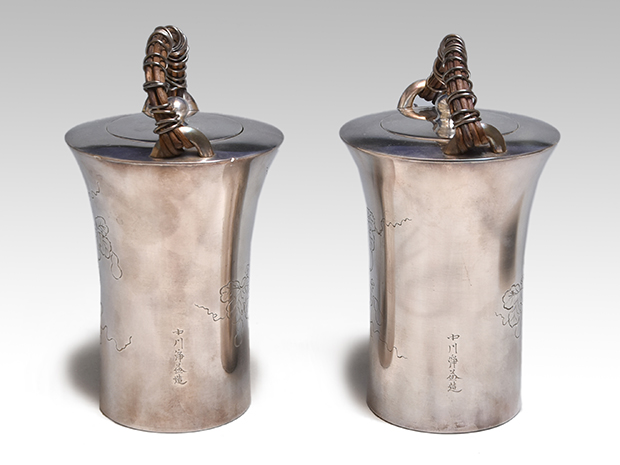 不昧公好 南鐐(銀製) 酒器 一対(2点) 夕顔彫金入り 九代 中川浄益(作) 明治18年作 共箱