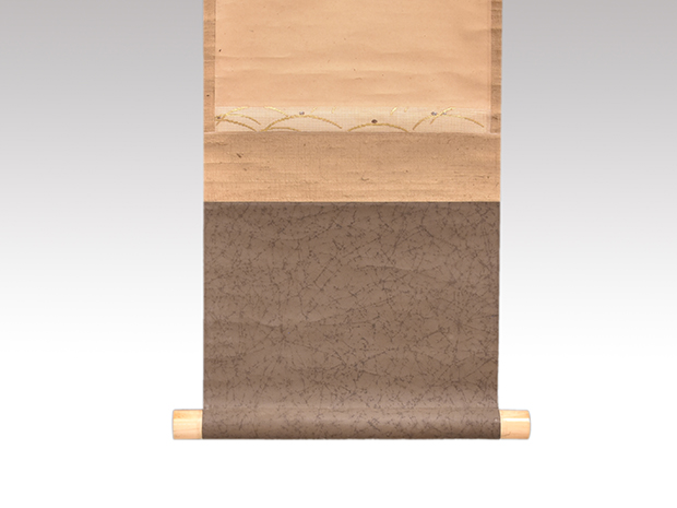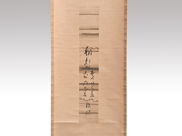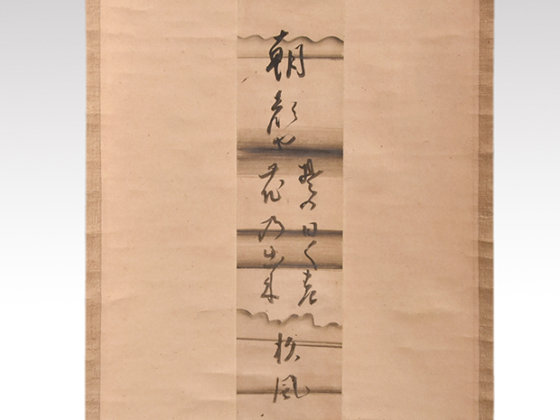| 商品説明 | 銀泥を引いた料紙に「朝顔やその日その日の花の出来 杉風」と書いてあります。 表具は台張りで一文字、露竹屋町裂 中回し、しけ 上下、もみ紙 軸先、象牙の良い表具で良い状態です。 朝顔に合わせた上等な竹屋町裂の露の一文字が洒落ております。 |