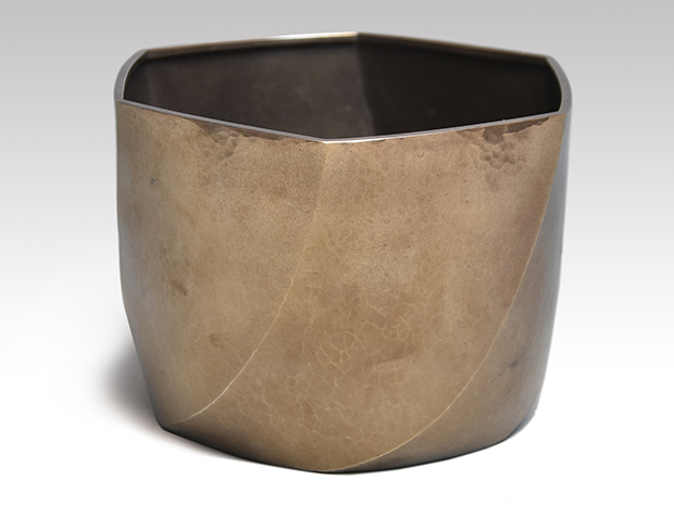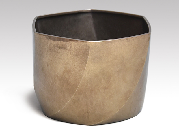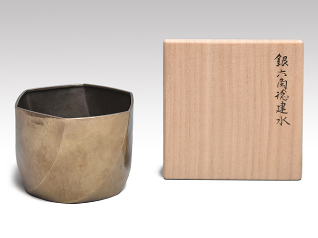 | 商品説明 | 銀製の建水です。六面のねじりがありモダンですが数々の場面に応じても使用しやすい建水です。 鍛金での製作で膚に鎚目が見え稜線も見事です。 底に作者の印が入っております。 オブジェ、花入れとしてもご使用になれます。 |