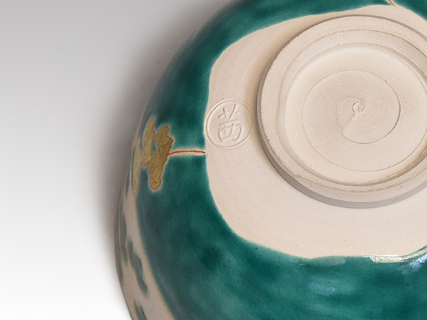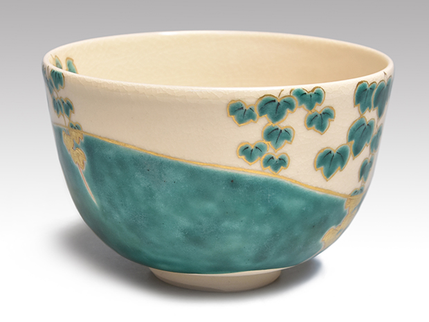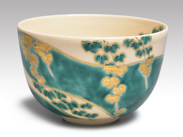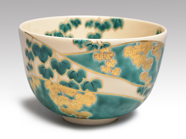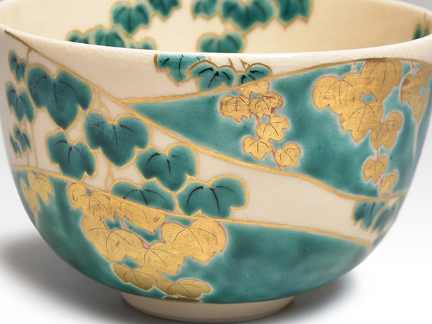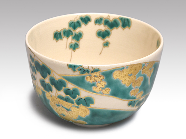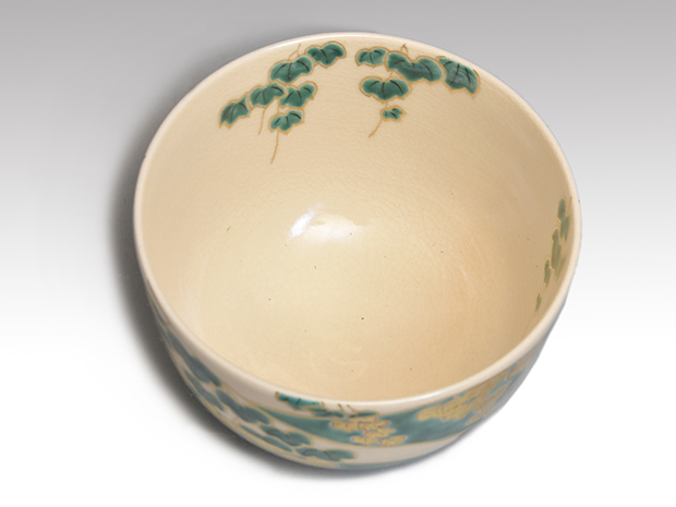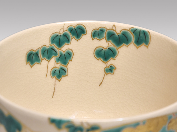 色絵金彩 蔦図茶碗 あかね窯 岡田華溪(作) 共箱