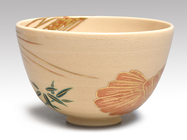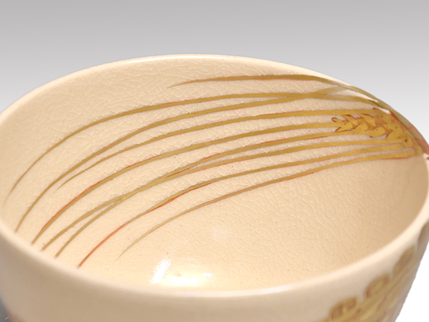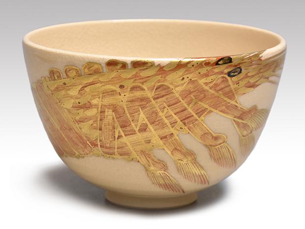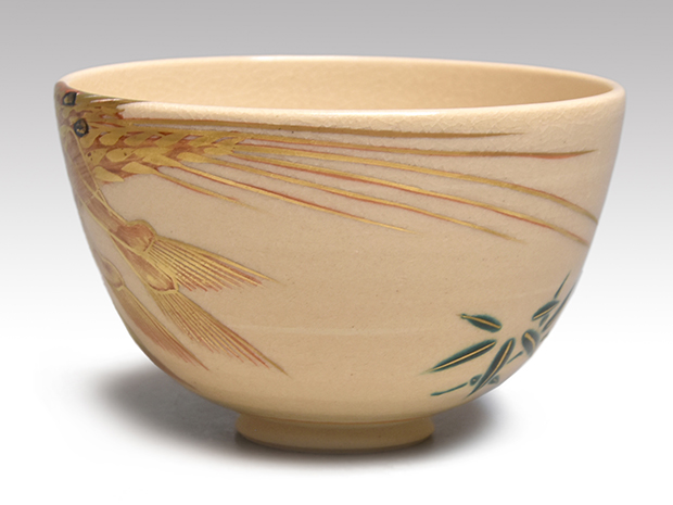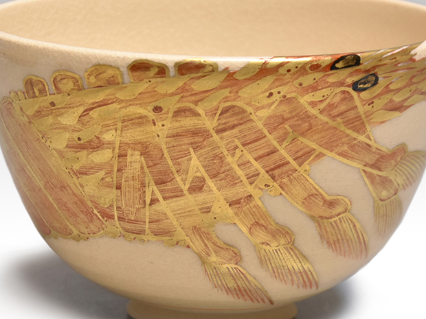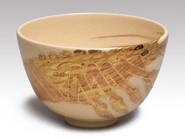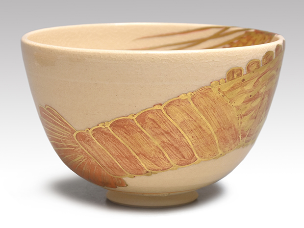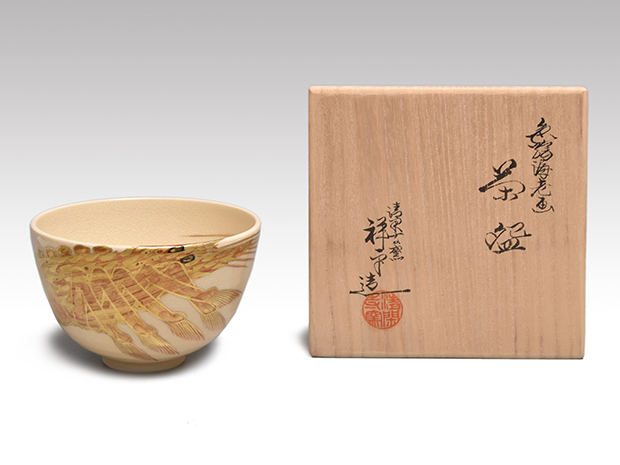 清閑寺窯 三代 杉田祥平(作) 色絵金彩海老画茶碗 共箱