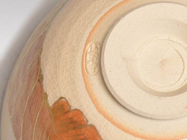 色絵金彩で豪華な海老を外側から内側まで大胆に描いております。 笹が1箇所施されアクセントとなっております。 慶事や賀、初釜等に宜しいですね。 高台脇に「清閑寺」と印が捺されております。 殆ど使用してなくキズ欠点なく良い状態です。