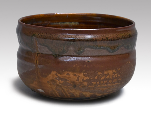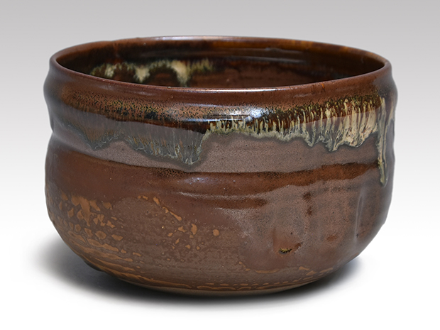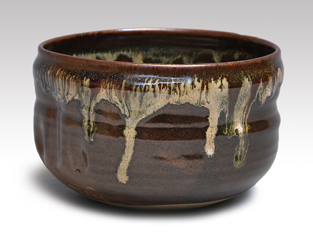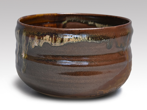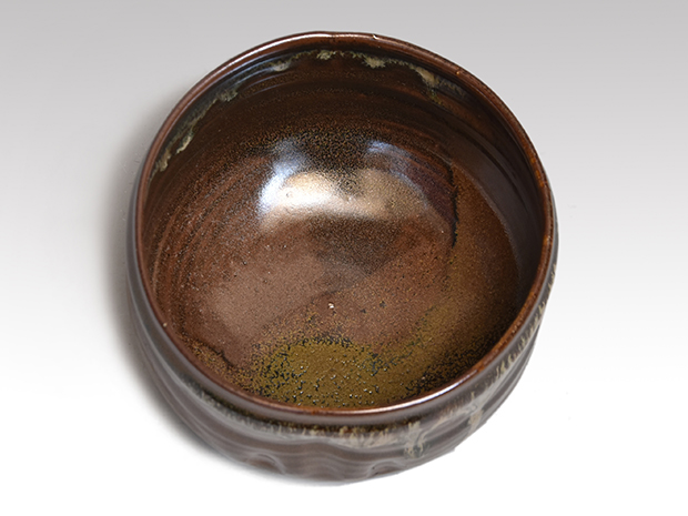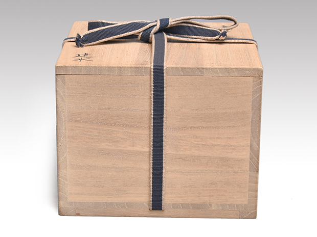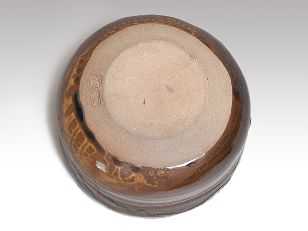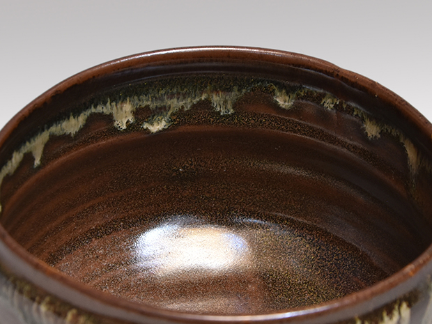 薄作で緩やかな轆轤目を見せ中央付近で胴〆し表情を付けております。
