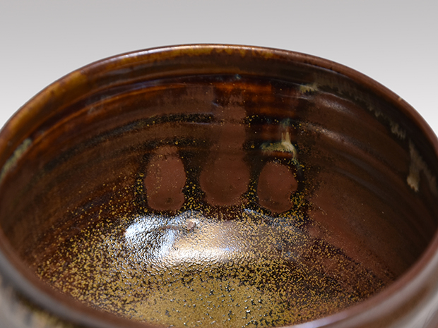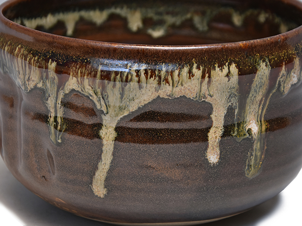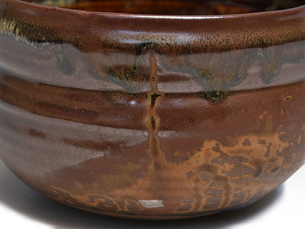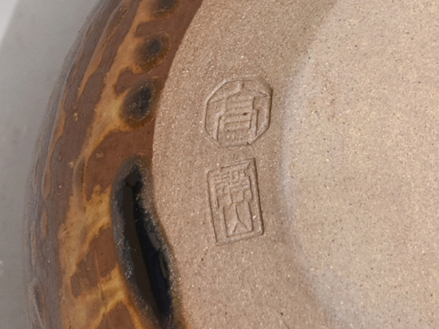 三か所正面に凸凹を付け釉薬を二重掛けし絶妙にところで止まっております。