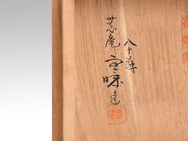 | 作者 | 9代 長岡住右衛門(長岡 空味) 明治7年(1874年)〜昭和35年(1960年) 島根県に生まれる 通称住右衛門 号は空味 1716年頃、松江藩主松平不昧候が同地の焼き物であった楽山焼(4代加田半六の頃)廃絶の危機に対し、布志名焼陶工であった住右衛門を招いて5代楽山焼窯主として再興を模索したのが始まりである。 以降長岡住右衛門を継承して代々松江藩の御庭焼として制作を続けている陶家で楽山焼の9代目 また長岡住右衛門としては5代目となる 現在は代数の多い9代長岡住右衛門と称す方が通例となっている |