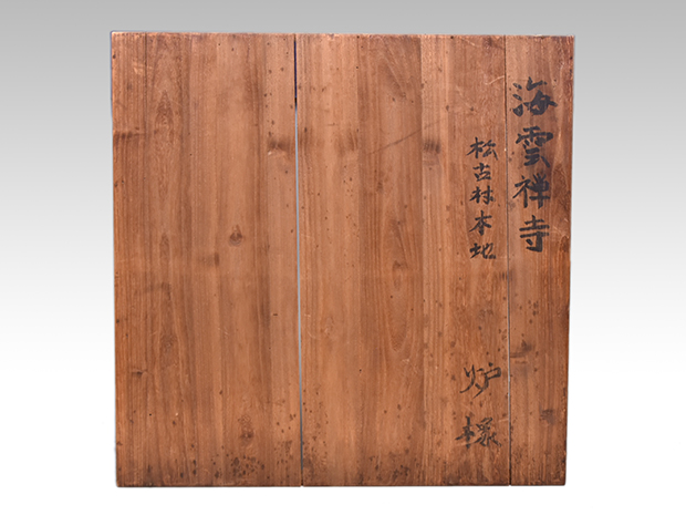 海雲寺の松の古材の炉縁です。 側面に「海雲禅寺」の焼印が捺されております。 高さが多少低く出来ております。